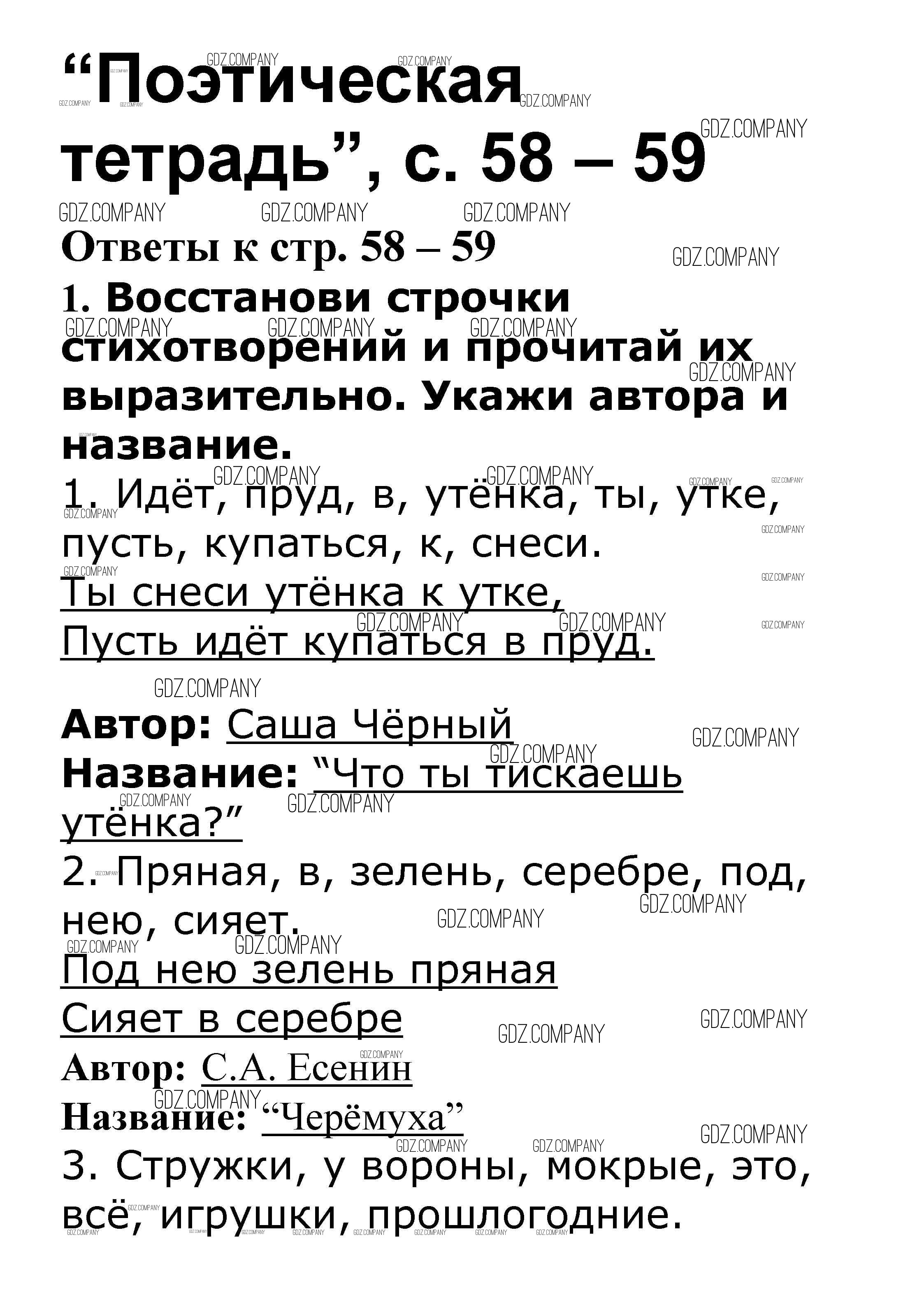 Здесь готовые ответы по Литературе за 3 (третий) класс от Кутявина Рабочая тетрадь   (издательство: ВАКО от 2019 г.) № 58-59