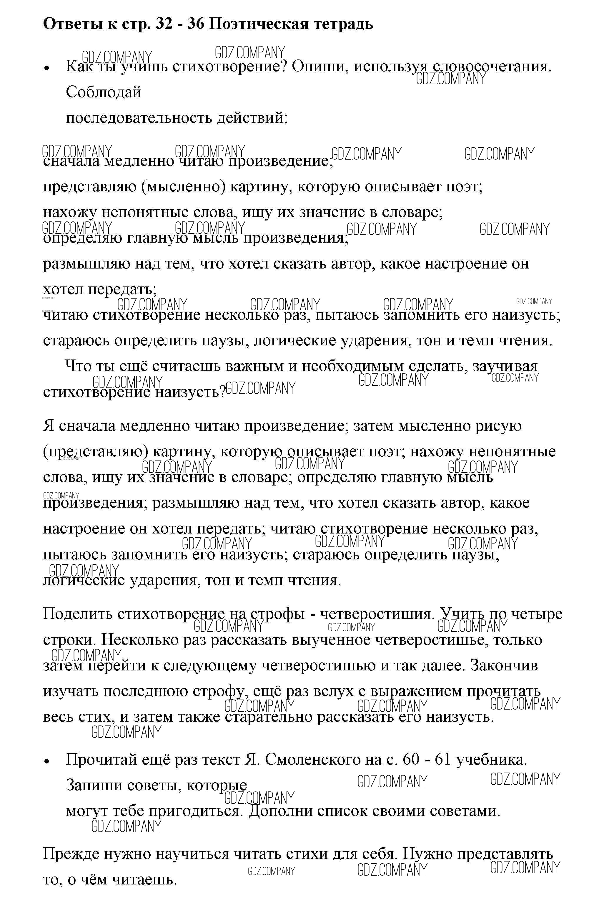 Здесь готовые ответы по Литературе за 3 (третий) класс от Бойкина, Виноградская Рабочая тетрадь Школа России  (издательство: Просвещение от 2018 г.) № 32-36