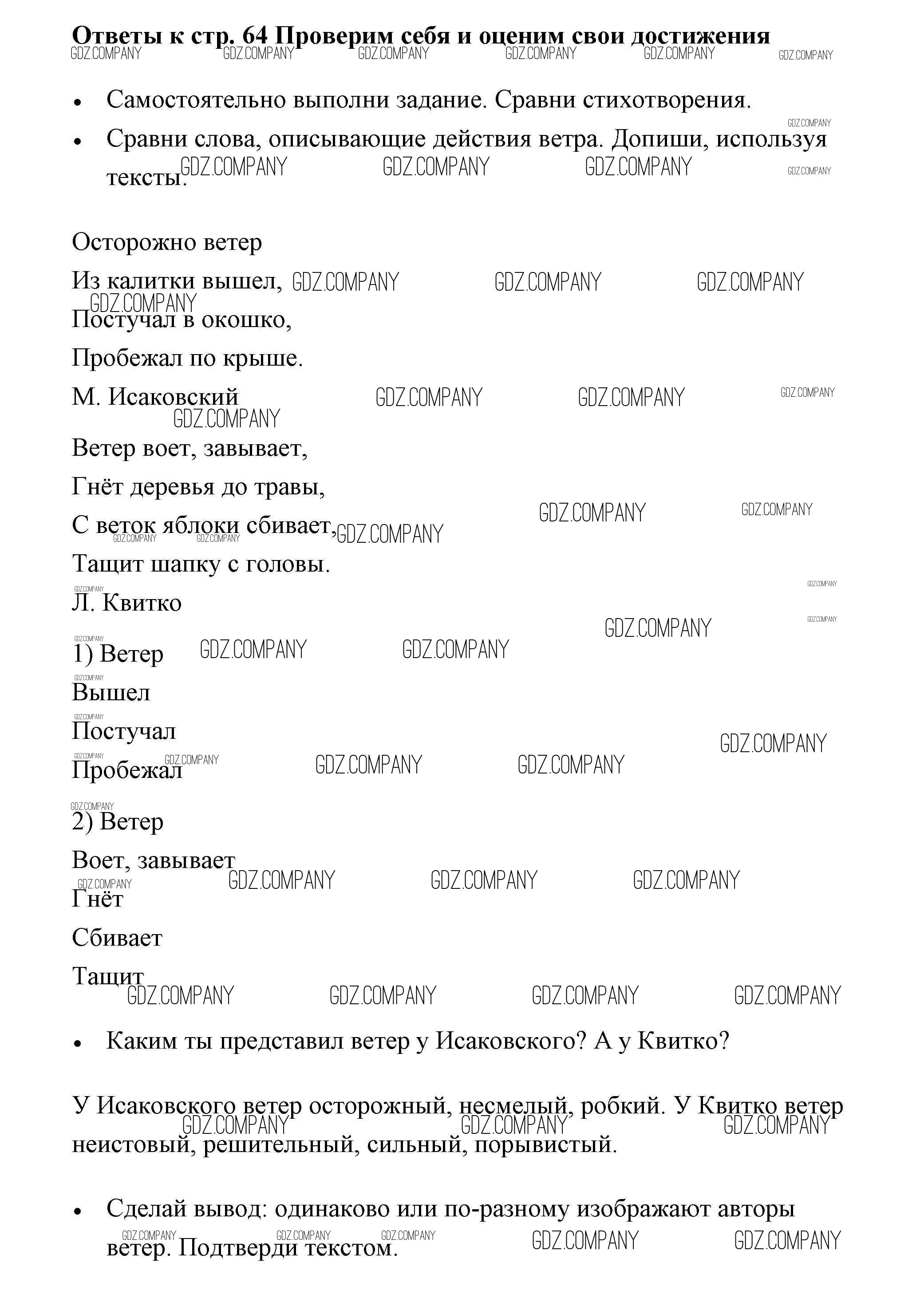 Здесь готовые ответы по Литературе за 3 (третий) класс от Бойкина, Виноградская Рабочая тетрадь Школа России  (издательство: Просвещение от 2018 г.) № 64