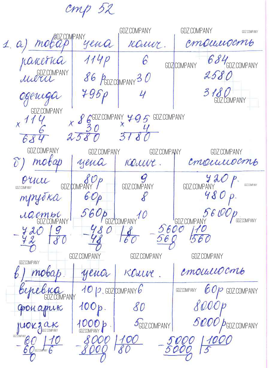 Здесь готовые ответы по Математике за 3 (третий) класс от Башмаков, Нефедова Рабочая тетрадь Планета знаний (издательство: Аст/Астрель от 2016 г.) № 52
