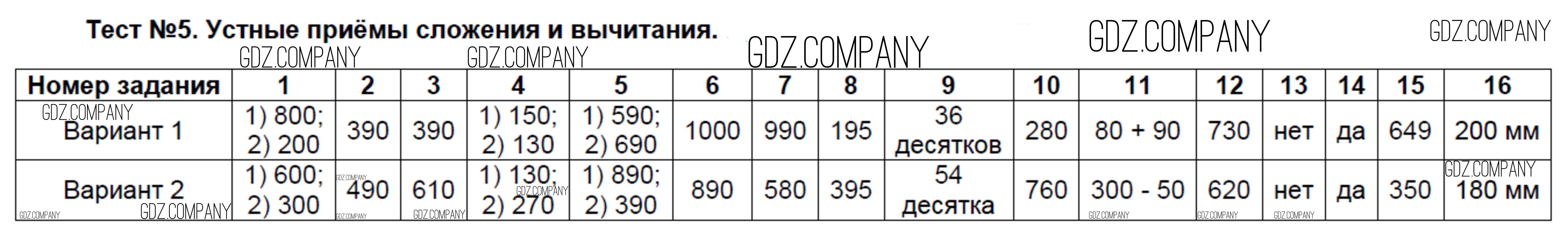 Здесь готовые ответы по Математике за 3 (третий) класс от Рудницкая Тесты УМК (издательство: Экзамен от 2020 г.) № 5