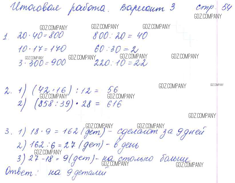 Здесь готовые ответы по Математике за 3 (третий) класс от Рудницкая, Юдачева Тетрадь для контрольных работ Начальная школа XXI века (издательство: Вентана-граф от 2017 г.) № 54