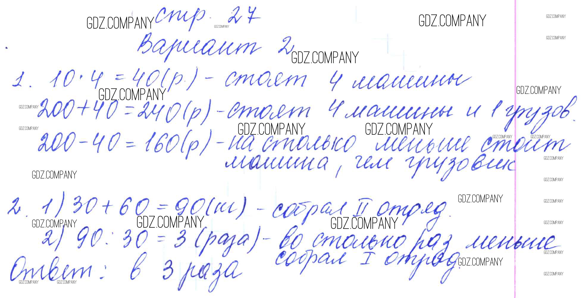 Здесь готовые ответы по Математике за 3 (третий) класс от Самсонова Самостоятельные работы УМК (издательство: Экзамен от 2016 г.) № 27