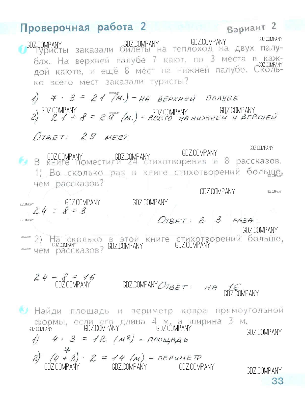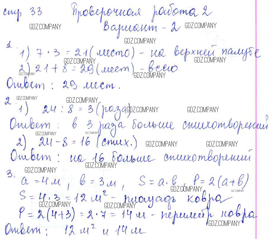 Здесь готовые ответы по Математике за 3 (третий) класс от Волкова Проверочные работы Школа России (издательство: Просвещение от 2014 г.) № 33