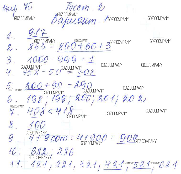 Здесь готовые ответы по Математике за 3 (третий) класс от Волкова Проверочные работы Школа России (издательство: Просвещение от 2014 г.) № 70