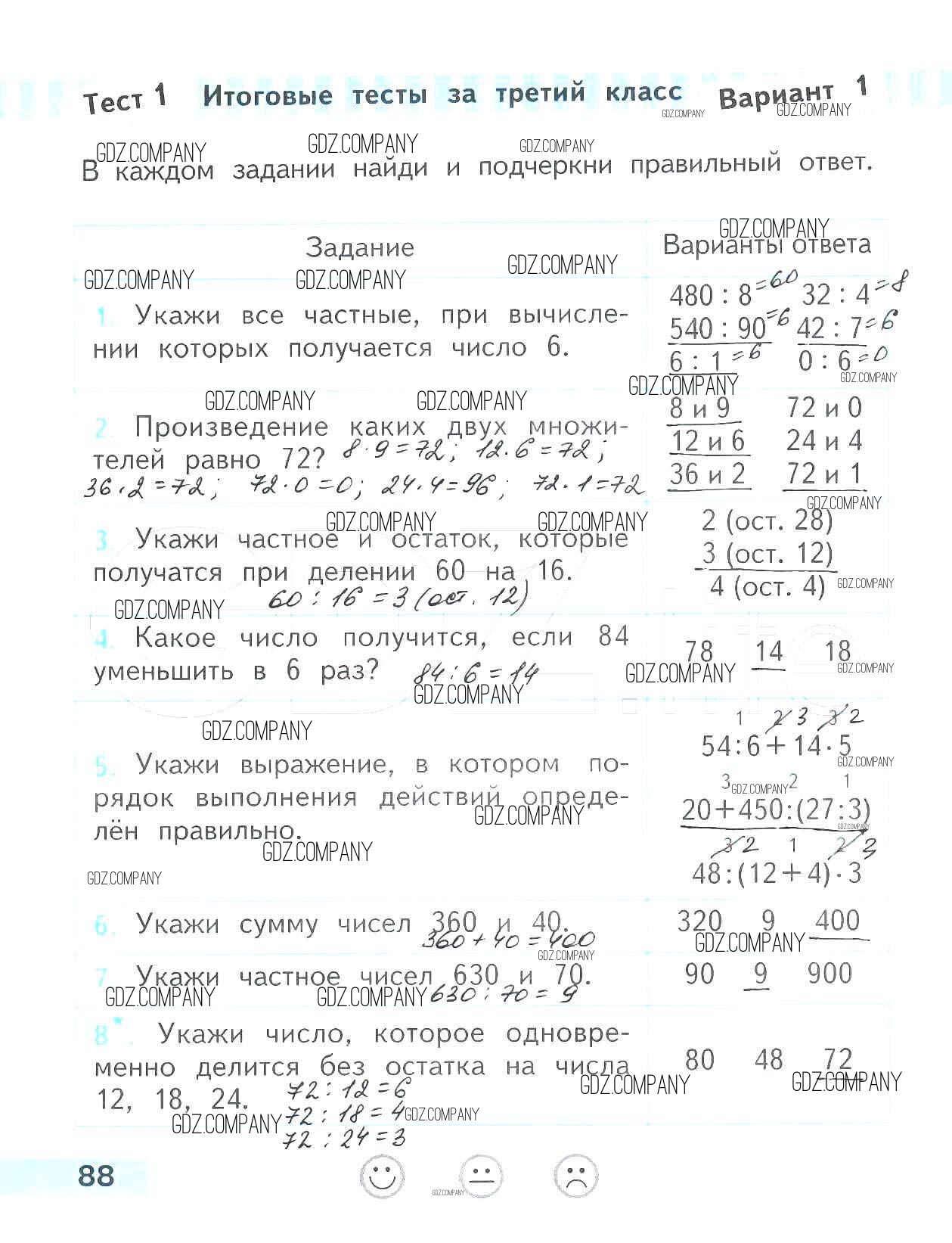 Здесь готовые ответы по Математике за 3 (третий) класс от Волкова Проверочные работы Школа России (издательство: Просвещение от 2014 г.) № 88