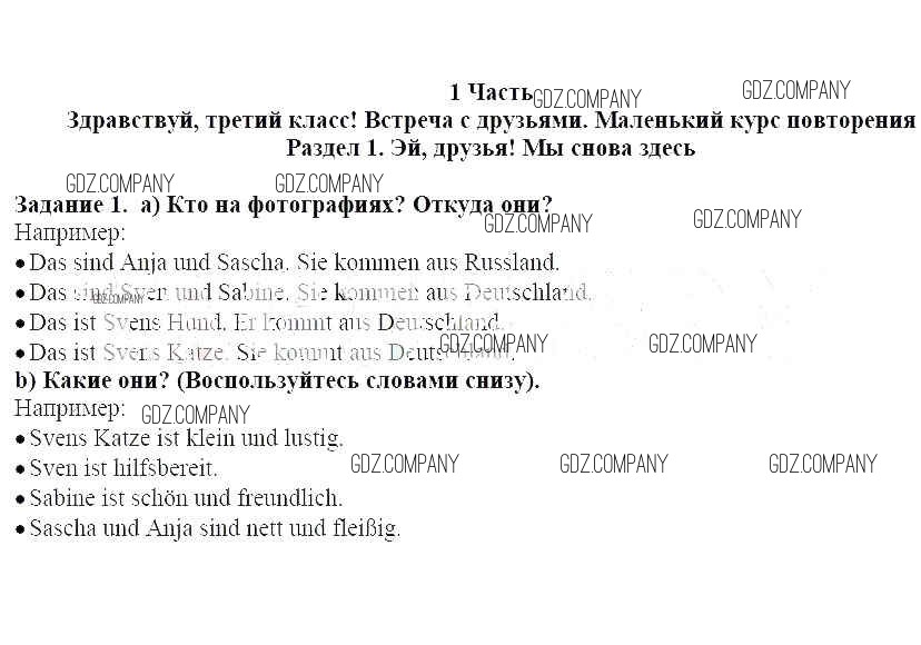 Здесь готовые ответы по Немецкому языку за 3 (третий) класс от Бим, Рыжова, Фомичева Учебник (издательство: Просвещение от 2014 г.) № 1