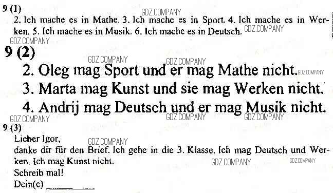 Здесь готовые ответы по Немецкому языку за 3 (третий) класс от Грицюк Рабочая тетрадь (издательство: Пiдручники и посiбники от 2014 г.) № 9