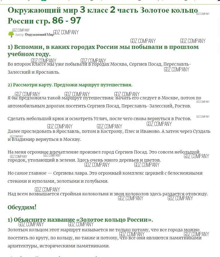 Здесь готовые ответы по Окружающему миру за 3 (третий) класс от Плешаков Учебник Школа России (издательство: Просвещение от 2017 г.) № 86