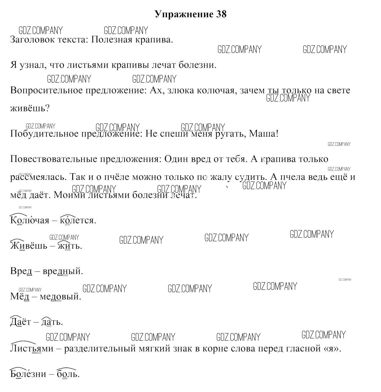 Здесь готовые ответы по Русскому языку за 3 (третий) класс от Антипова, Верниковская, Грабчикова Учебник (издательство: Сэр-Вит от 2019 г.) № 38