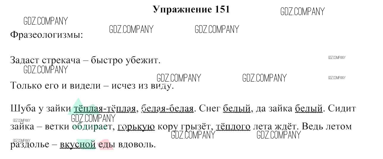 Здесь готовые ответы по Русскому языку за 3 (третий) класс от Антипова, Верниковская, Грабчикова Учебник (издательство: Сэр-Вит от 2019 г.) № 151