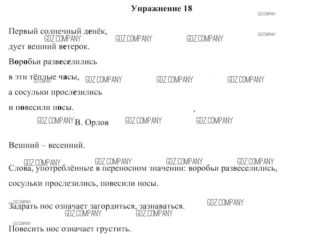 Здесь готовые ответы по Русскому языку за 3 (третий) класс от Антипова, Верниковская, Грабчикова Учебник (издательство: Сэр-Вит от 2019 г.) № 18