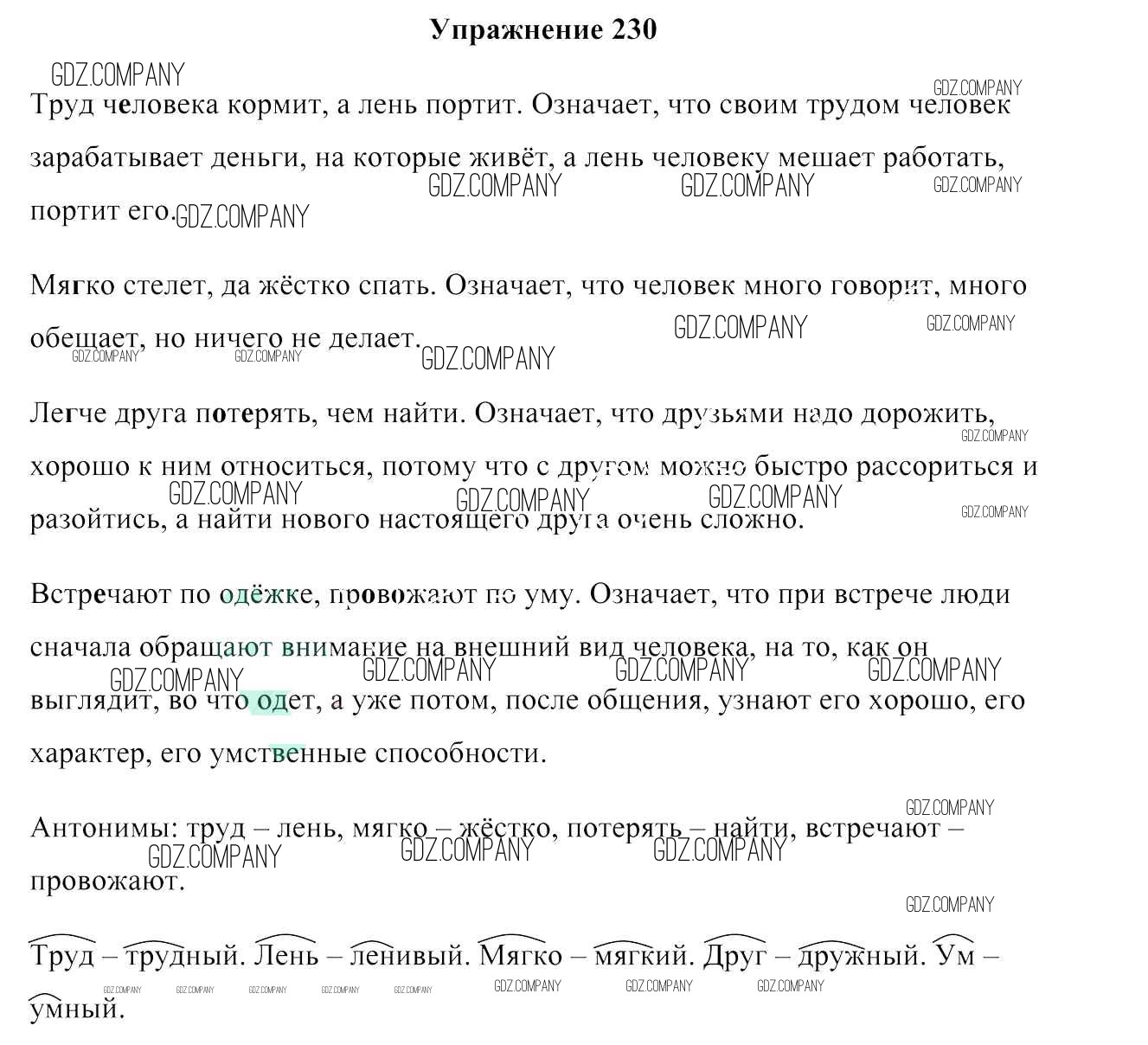 Здесь готовые ответы по Русскому языку за 3 (третий) класс от Антипова, Верниковская, Грабчикова Учебник (издательство: Сэр-Вит от 2019 г.) № 230