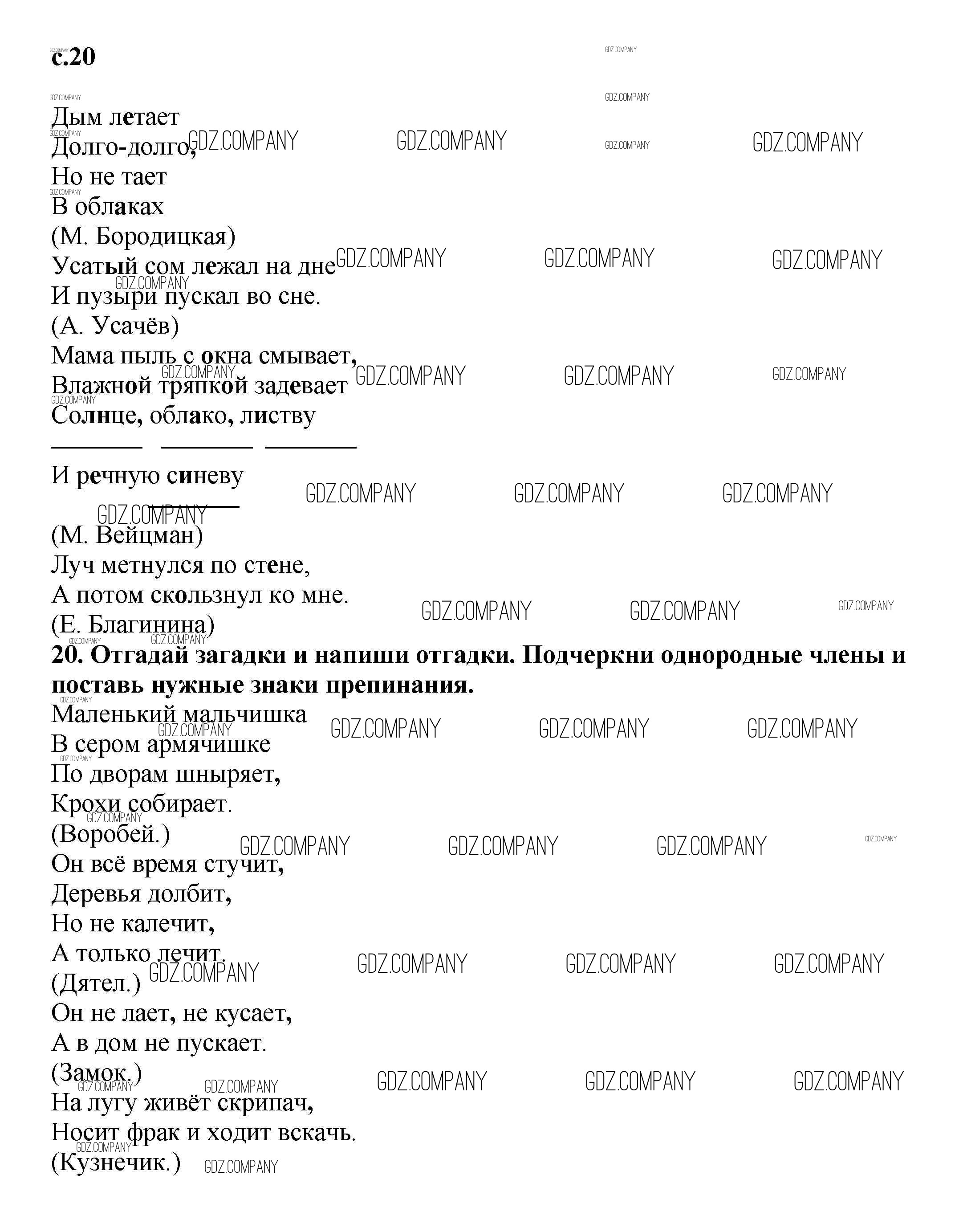 Здесь готовые ответы по Русскому языку за 3 (третий) класс от Байкова Тетрадь для самостоятельной работы (издательство: Академкнига от 2017 г.) № 20