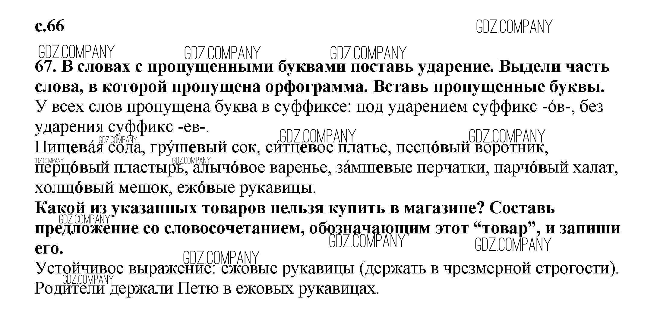 Здесь готовые ответы по Русскому языку за 3 (третий) класс от Байкова Тетрадь для самостоятельной работы (издательство: Академкнига от 2017 г.) № 66