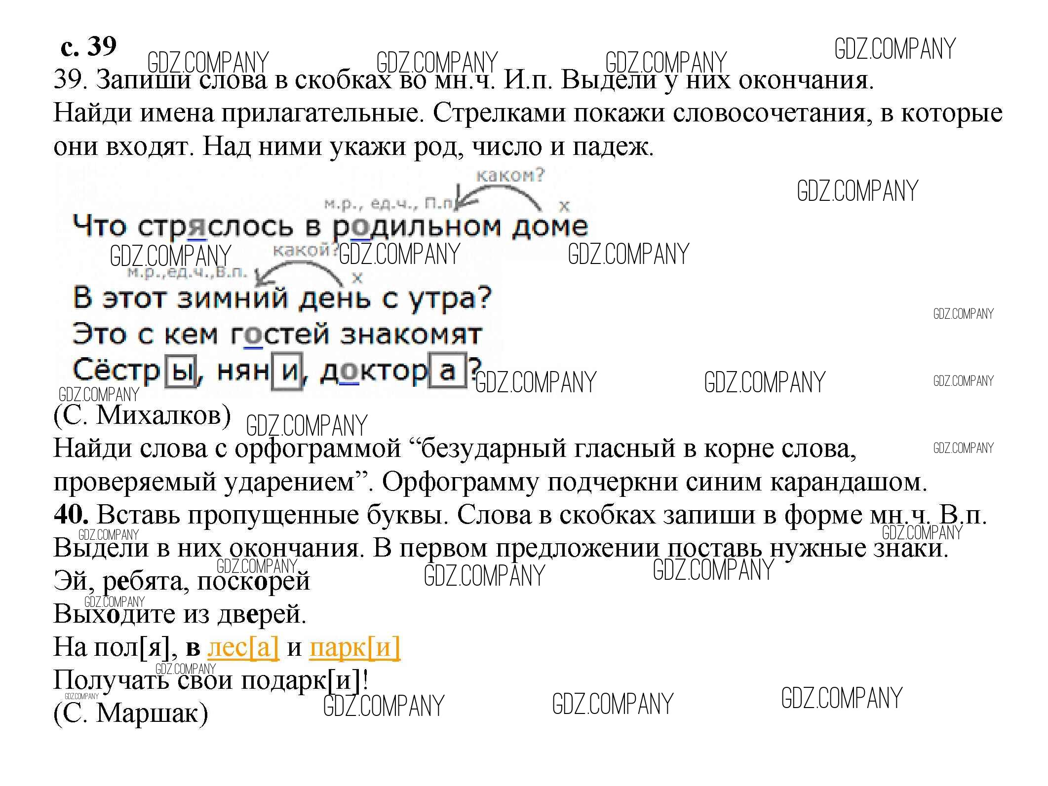 Здесь готовые ответы по Русскому языку за 3 (третий) класс от Байкова Тетрадь для самостоятельной работы (издательство: Академкнига от 2017 г.) № 39