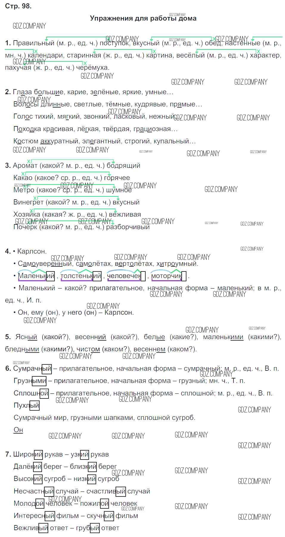 часть 2 / упражнения для работы дома / стр.98