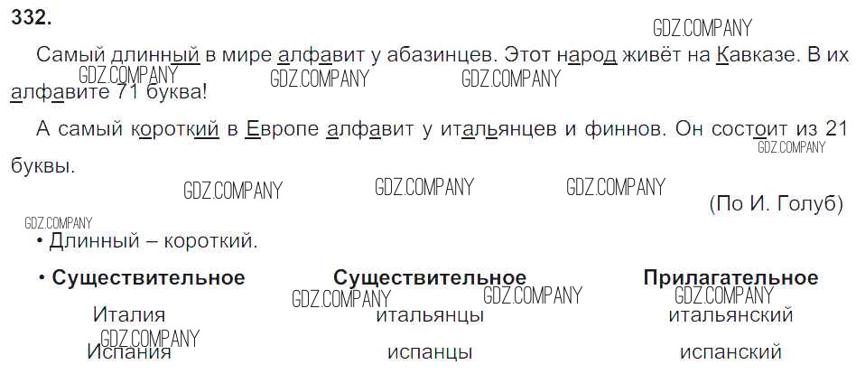 Здесь готовые ответы по Русскому языку за 3 (третий) класс от Бунеев, Бунеева, Пронина Учебник Школа 2100  (издательство: Баласс от 2015 г.) № 332