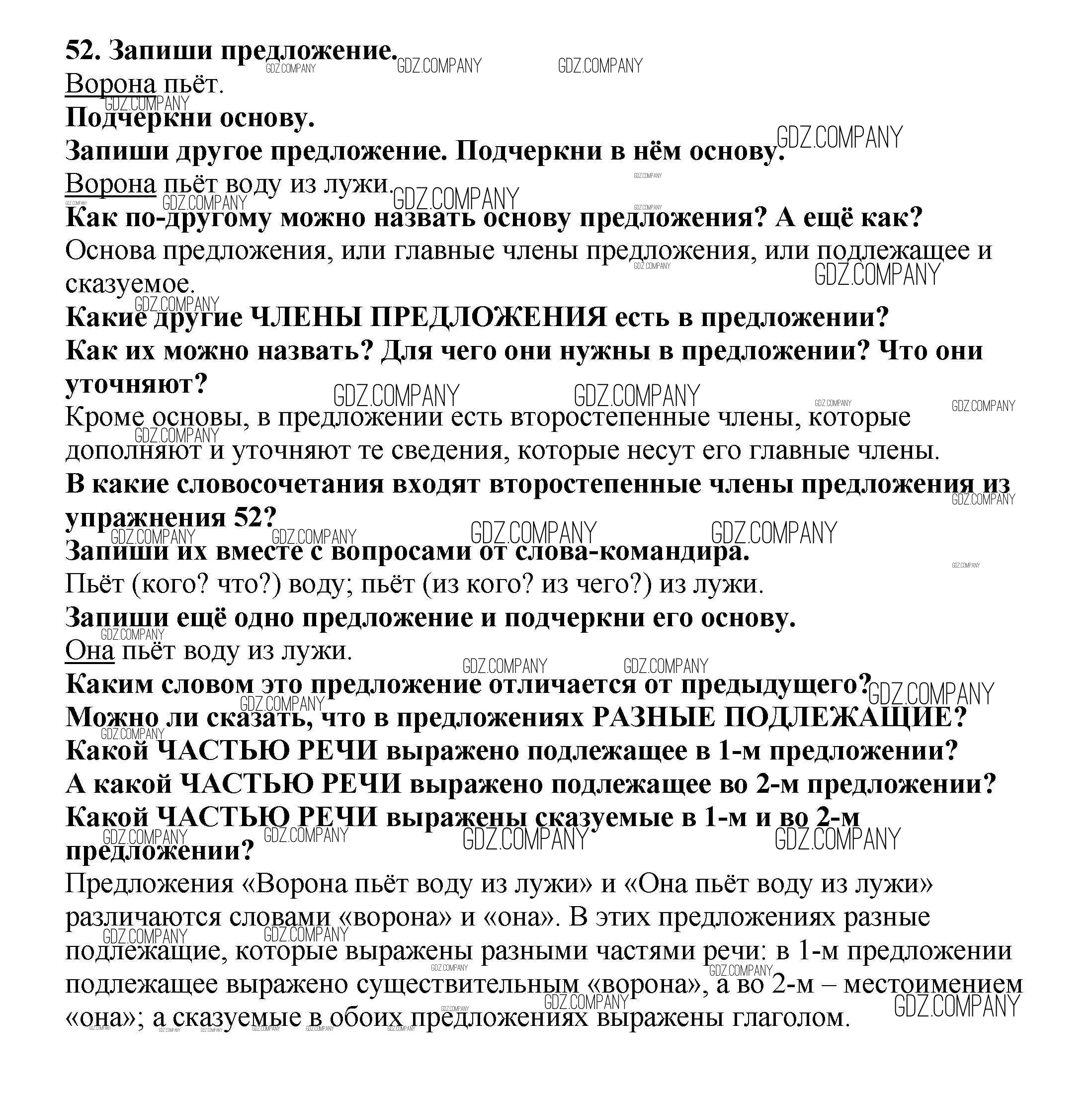 Здесь готовые ответы по Русскому языку за 3 (третий) класс от Каленчук, Чуракова, Байкова Учебник Перспективная начальная школа (издательство: Академкнига от 2014 г.) № 52