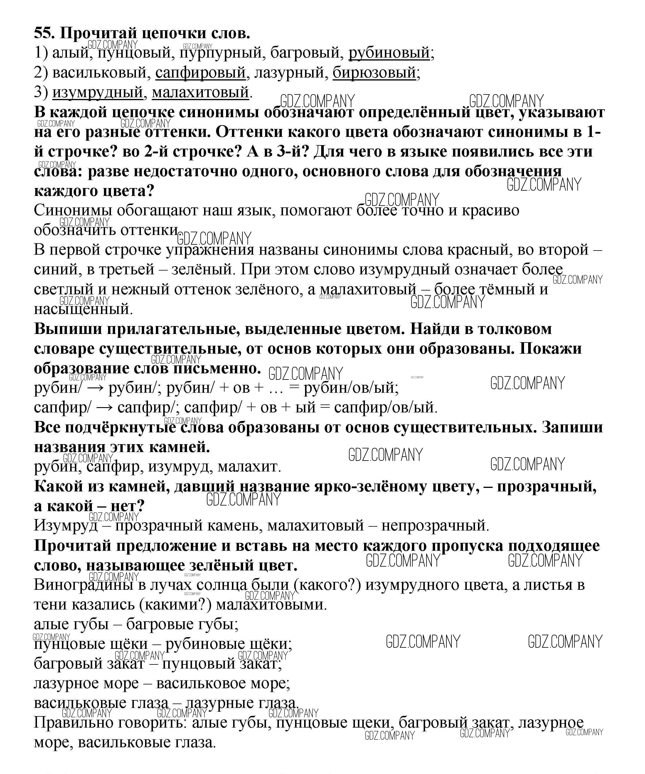 Здесь готовые ответы по Русскому языку за 3 (третий) класс от Каленчук, Чуракова, Байкова Учебник Перспективная начальная школа  (издательство: Академкнига от 2014 г.) № 55