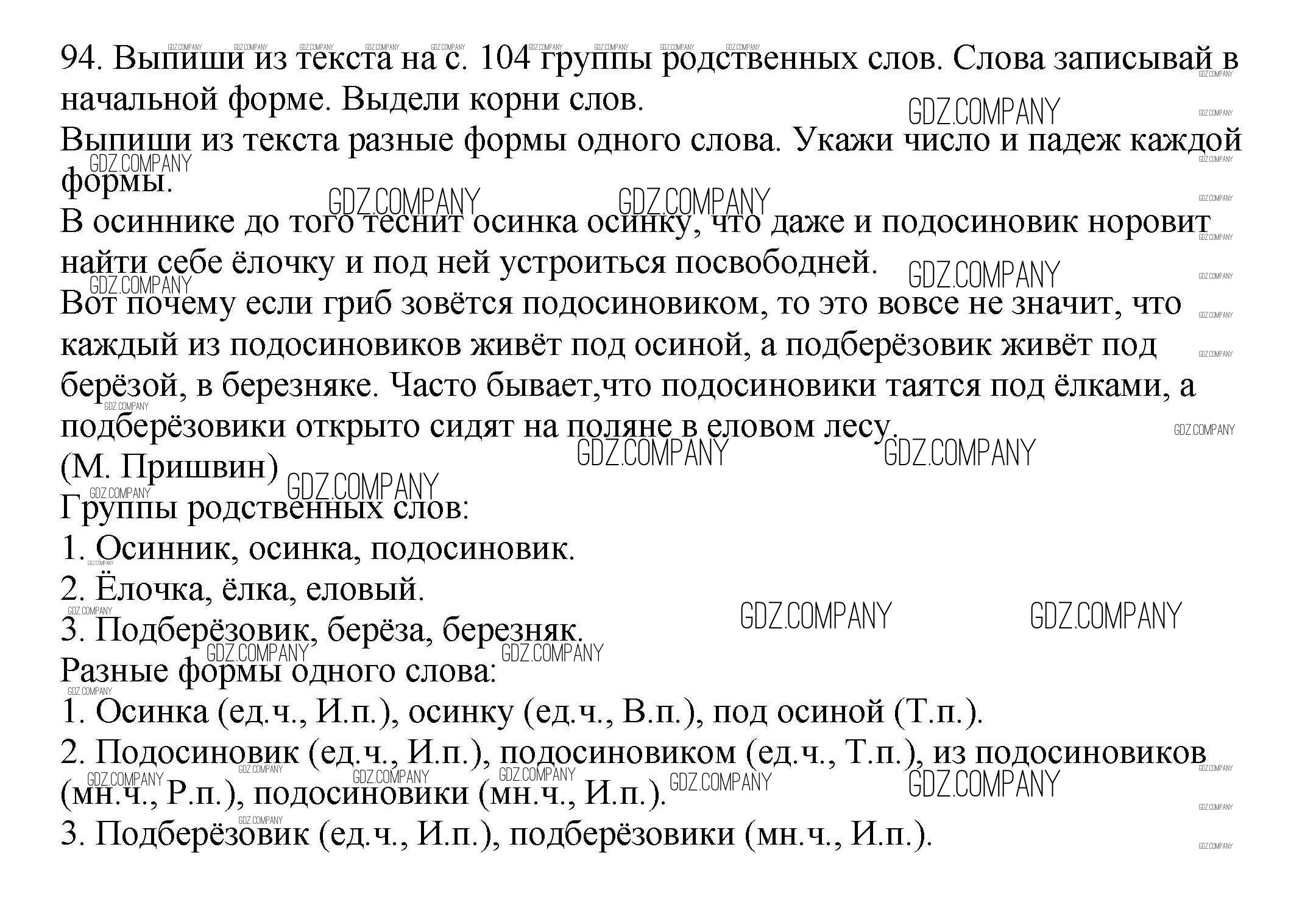Здесь готовые ответы по Русскому языку за 3 (третий) класс от Каленчук, Чуракова, Байкова Учебник Перспективная начальная школа  (издательство: Академкнига от 2014 г.) № 94