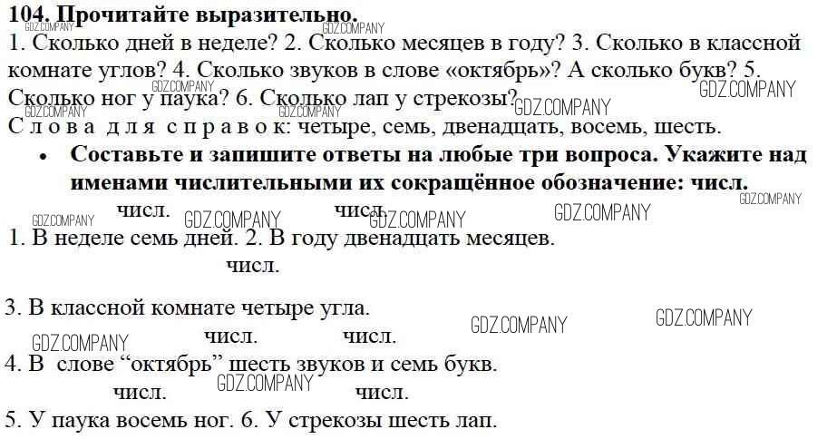 Здесь готовые ответы по Русскому языку за 3 (третий) класс от Канакина, Горецкий Учебник Школа России (издательство: Просвещение от 2013 г.) № 104
