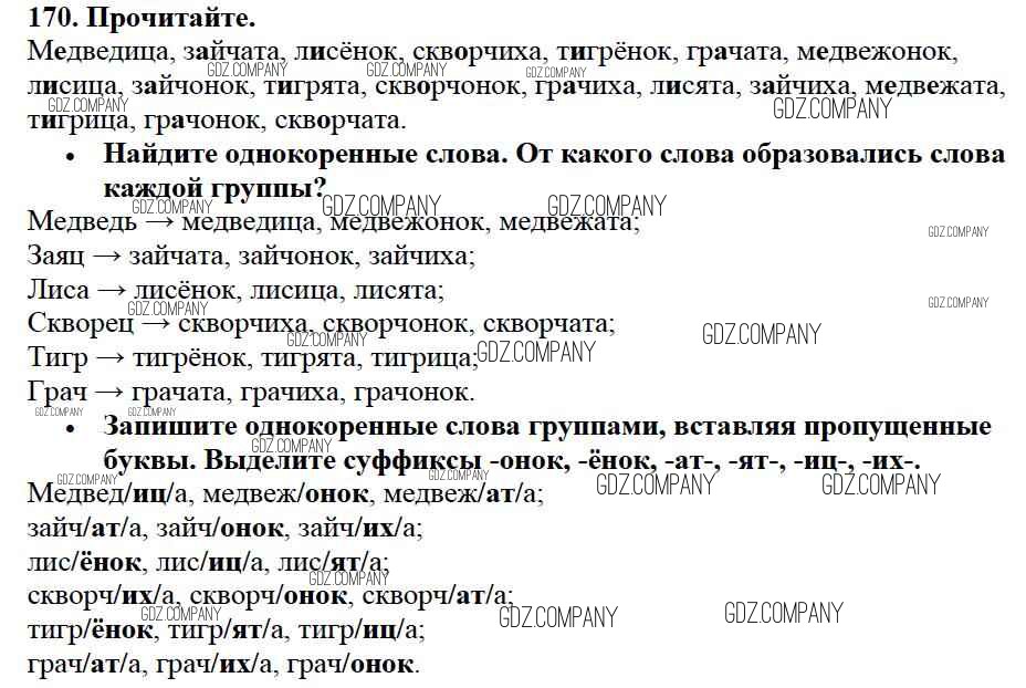 Здесь готовые ответы по Русскому языку за 3 (третий) класс от Канакина, Горецкий Учебник Школа России (издательство: Просвещение от 2013 г.) № 170