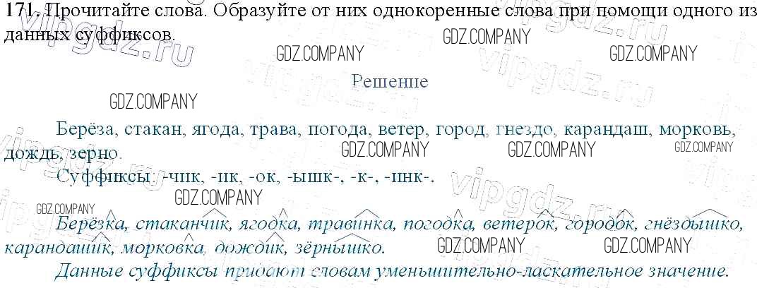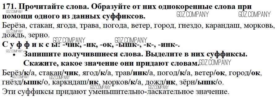 Здесь готовые ответы по Русскому языку за 3 (третий) класс от Канакина, Горецкий Учебник Школа России (издательство: Просвещение от 2013 г.) № 171