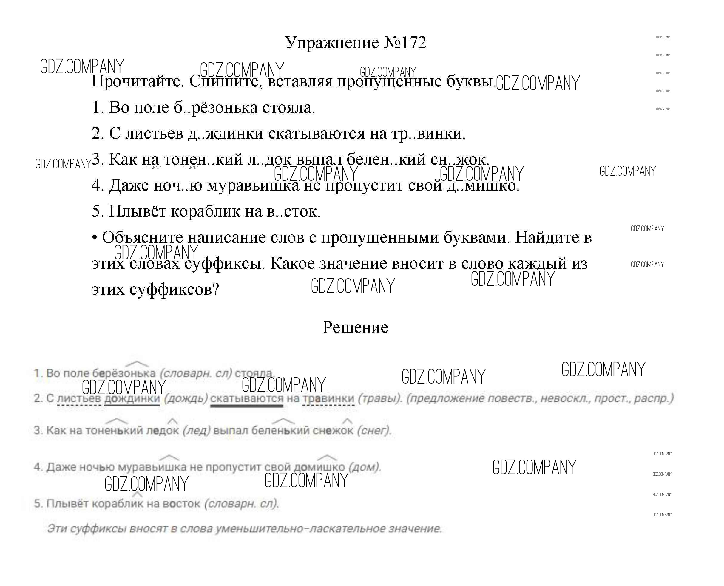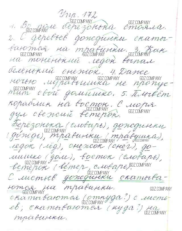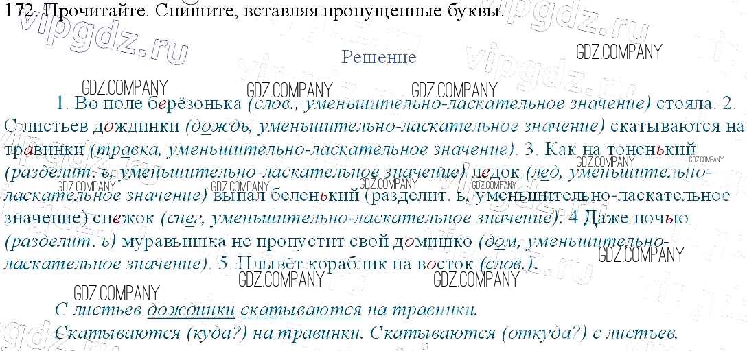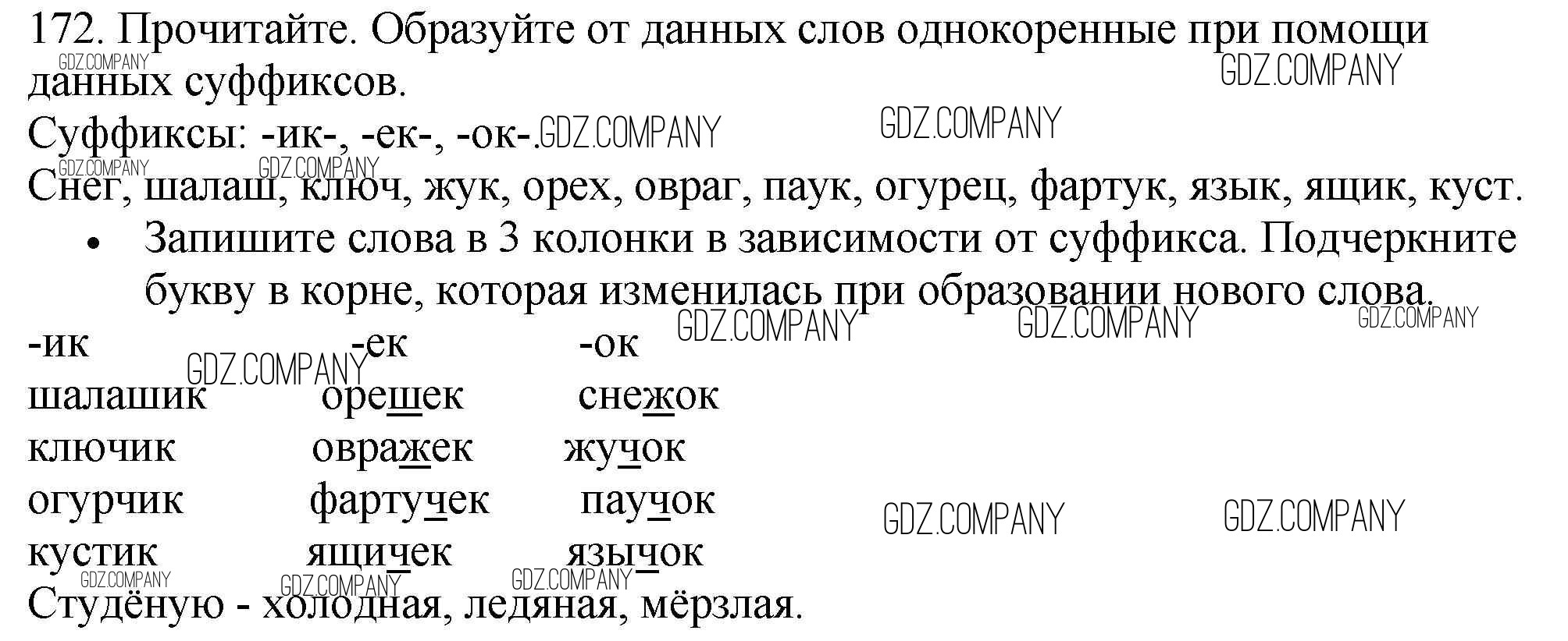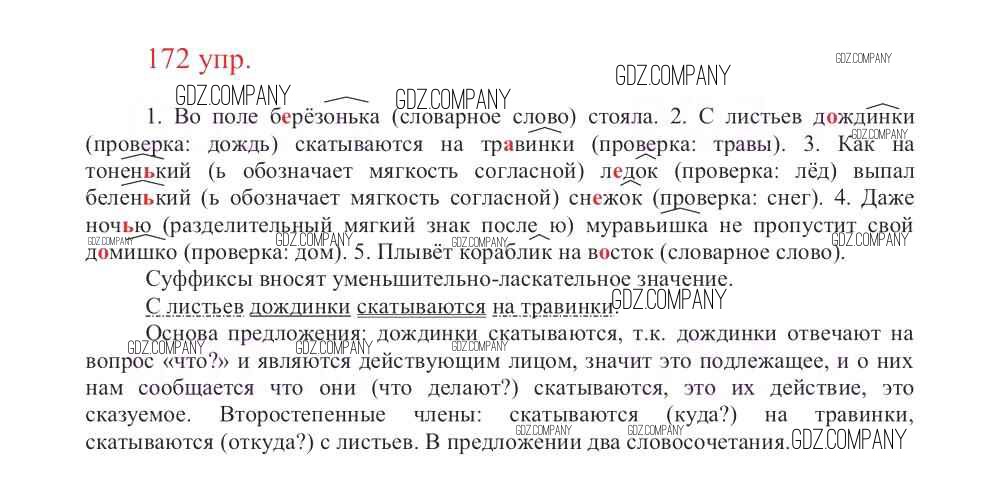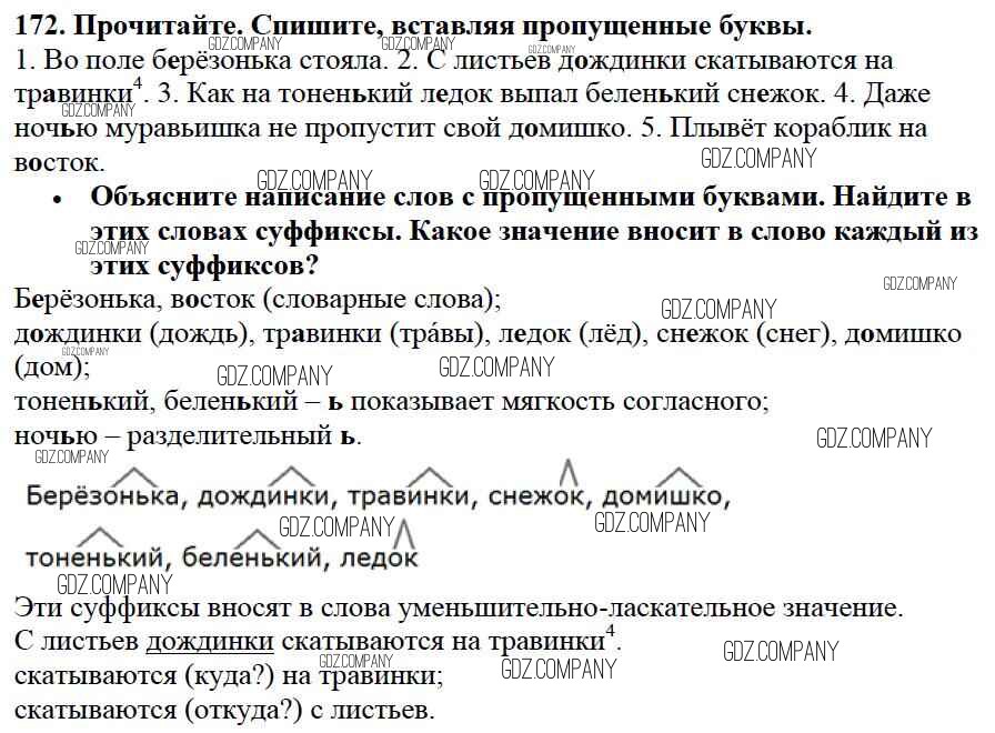 Здесь готовые ответы по Русскому языку за 3 (третий) класс от Канакина, Горецкий Учебник Школа России (издательство: Просвещение от 2013 г.) № 172