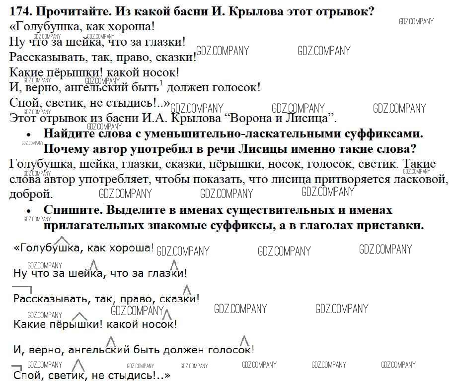 Здесь готовые ответы по Русскому языку за 3 (третий) класс от Канакина, Горецкий Учебник Школа России (издательство: Просвещение от 2013 г.) № 174