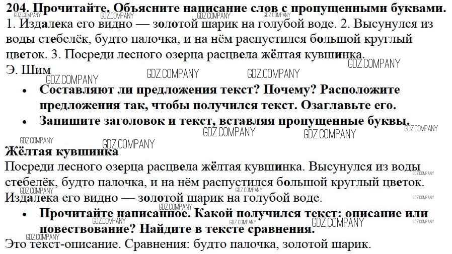 Здесь готовые ответы по Русскому языку за 3 (третий) класс от Канакина, Горецкий Учебник Школа России (издательство: Просвещение от 2013 г.) № 204