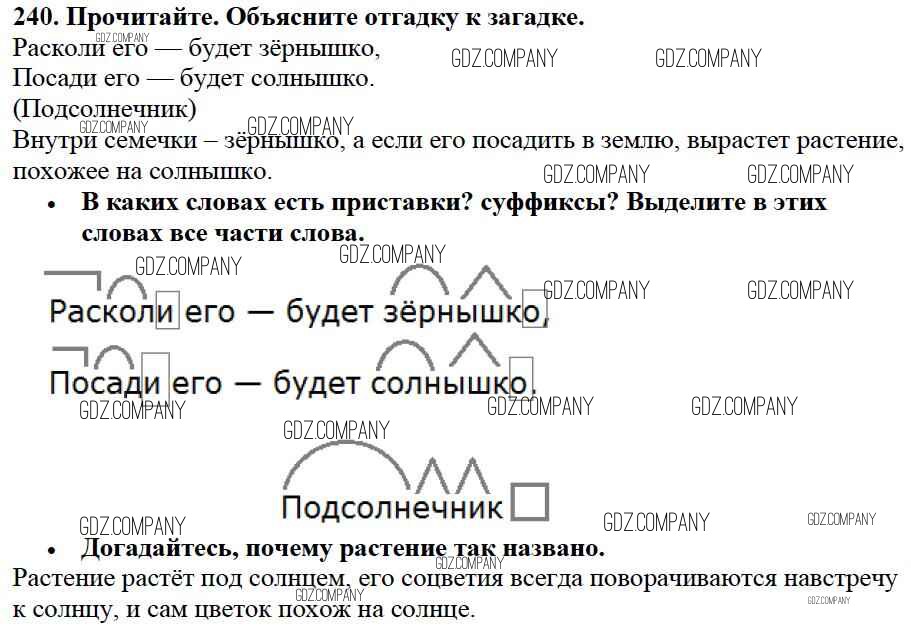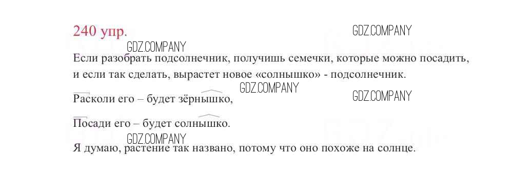 Здесь готовые ответы по Русскому языку за 3 (третий) класс от Канакина, Горецкий Учебник Школа России (издательство: Просвещение от 2013 г.) № 240