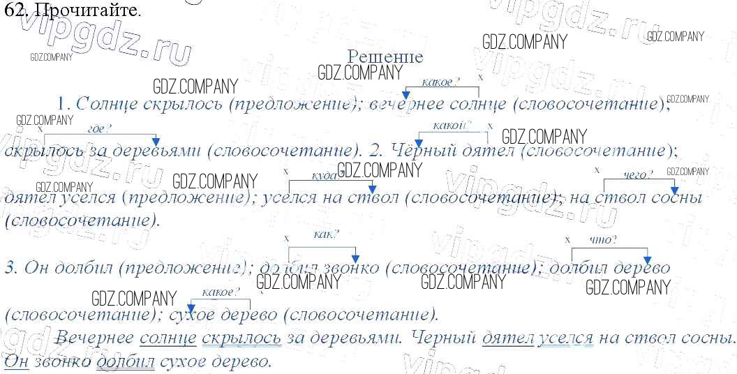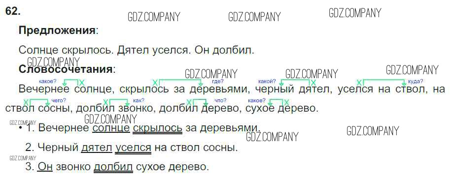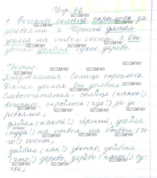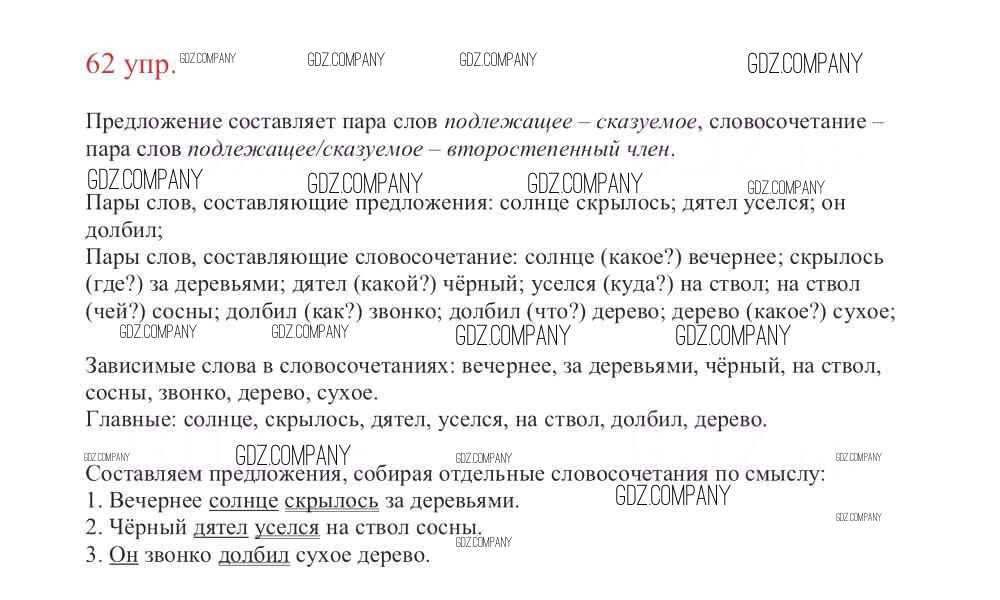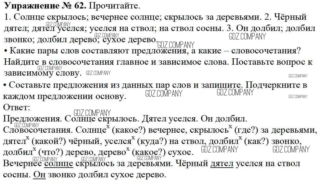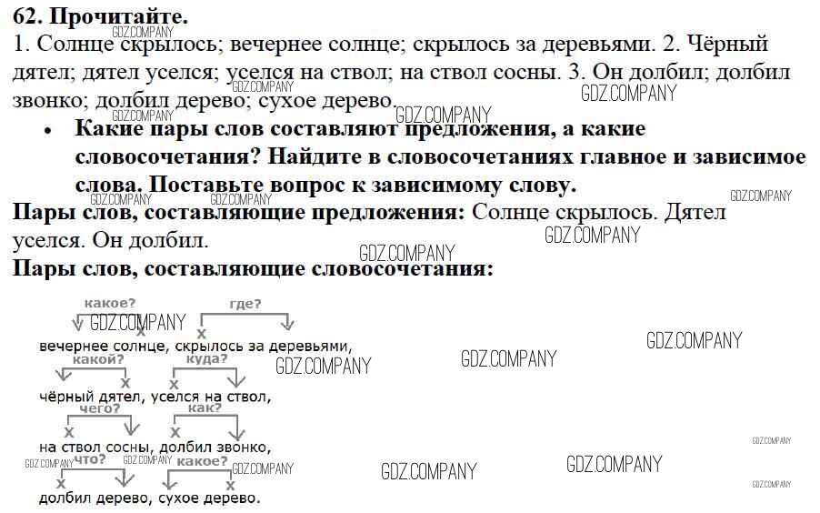 Здесь готовые ответы по Русскому языку за 3 (третий) класс от Канакина, Горецкий Учебник Школа России (издательство: Просвещение от 2013 г.) № 62
