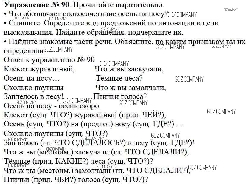 Здесь готовые ответы по Русскому языку за 3 (третий) класс от Канакина, Горецкий Учебник Школа России (издательство: Просвещение от 2013 г.) № 90