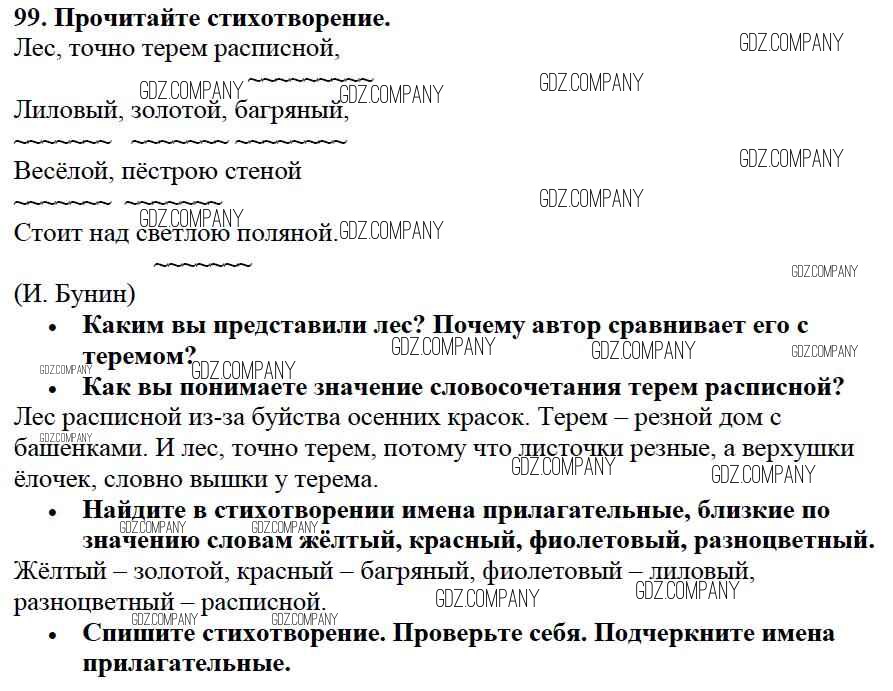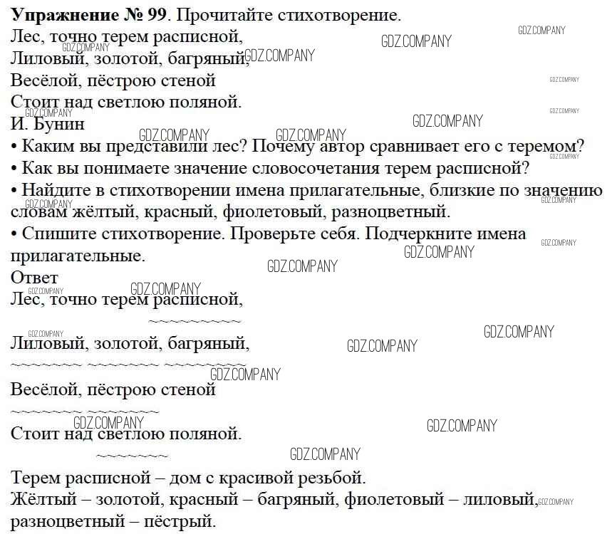 Здесь готовые ответы по Русскому языку за 3 (третий) класс от Канакина, Горецкий Учебник Школа России (издательство: Просвещение от 2013 г.) № 99