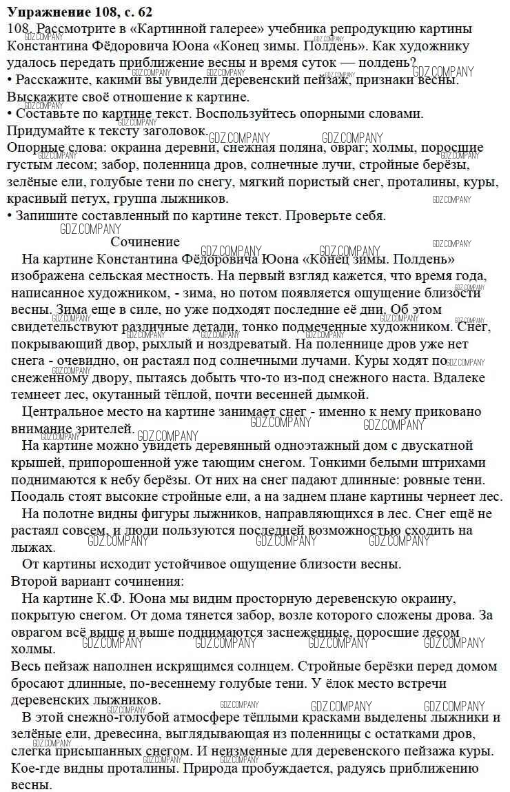 Здесь готовые ответы по Русскому языку за 3 (третий) класс от Канакина, Горецкий Учебник Школа России (издательство: Просвещение от 2013 г.) № 108