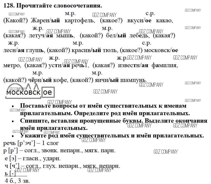 Здесь готовые ответы по Русскому языку за 3 (третий) класс от Канакина, Горецкий Учебник Школа России (издательство: Просвещение от 2013 г.) № 128