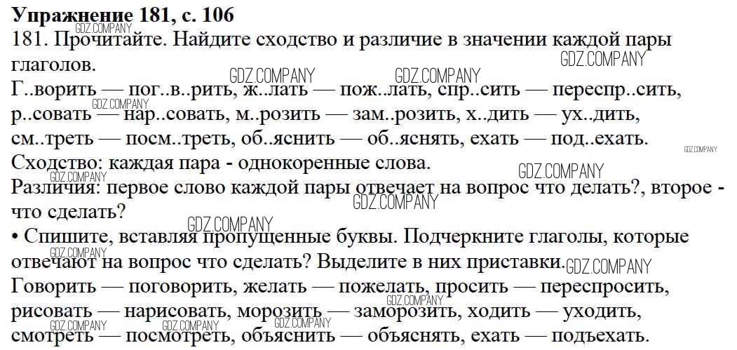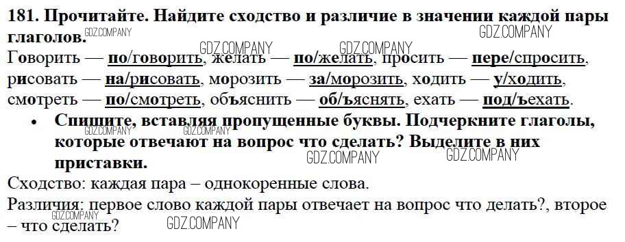 Здесь готовые ответы по Русскому языку за 3 (третий) класс от Канакина, Горецкий Учебник Школа России (издательство: Просвещение от 2013 г.) № 181