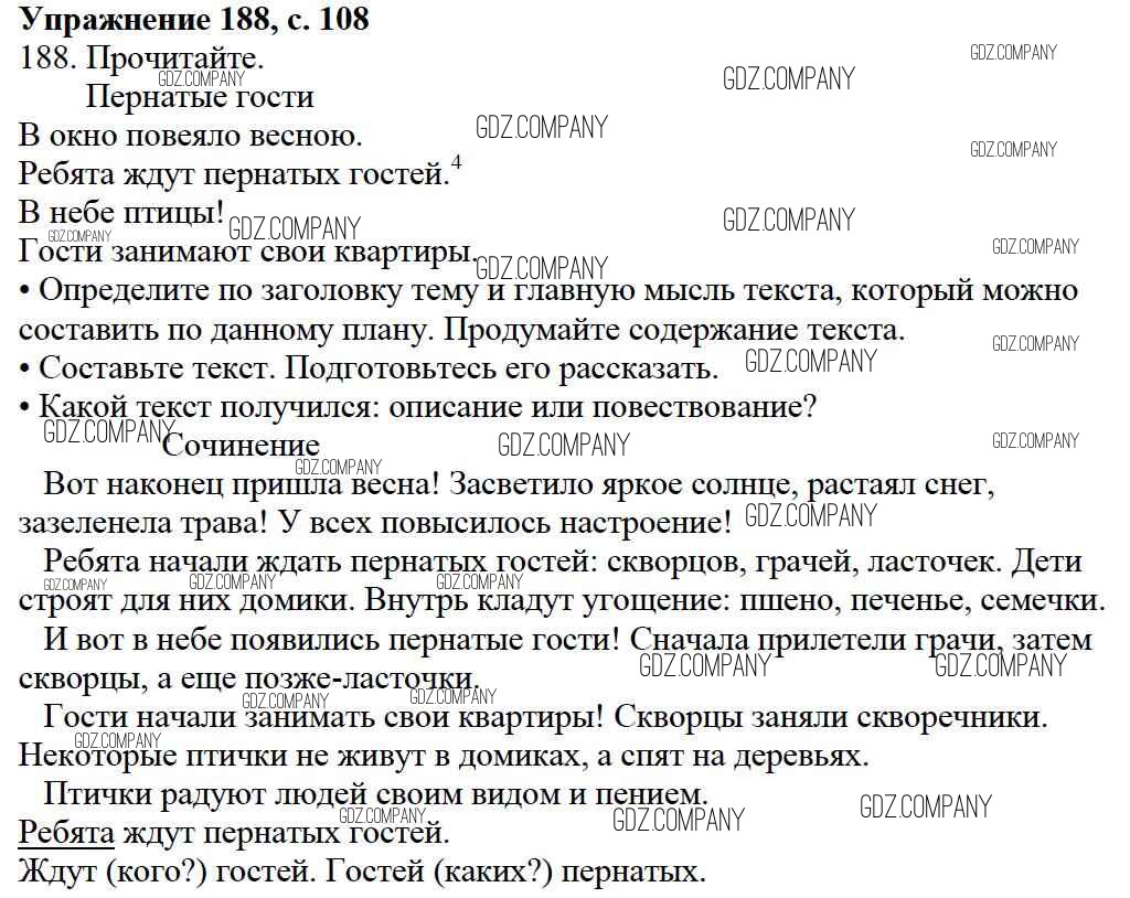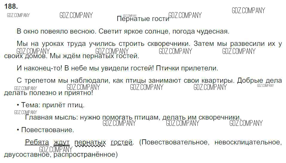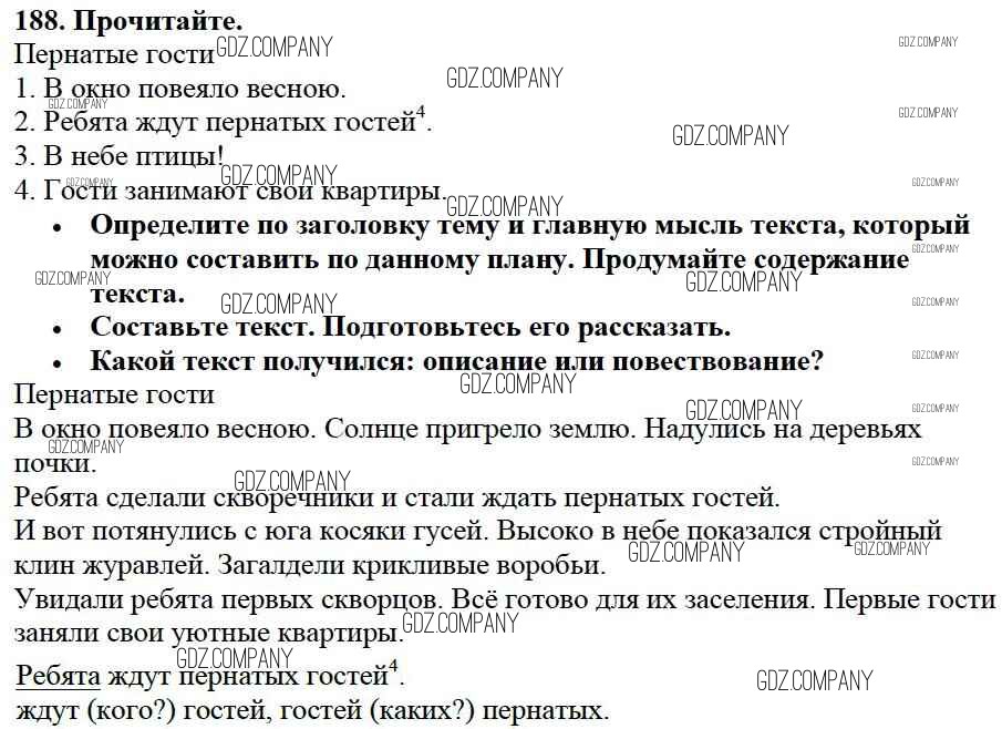 Здесь готовые ответы по Русскому языку за 3 (третий) класс от Канакина, Горецкий Учебник Школа России (издательство: Просвещение от 2013 г.) № 188