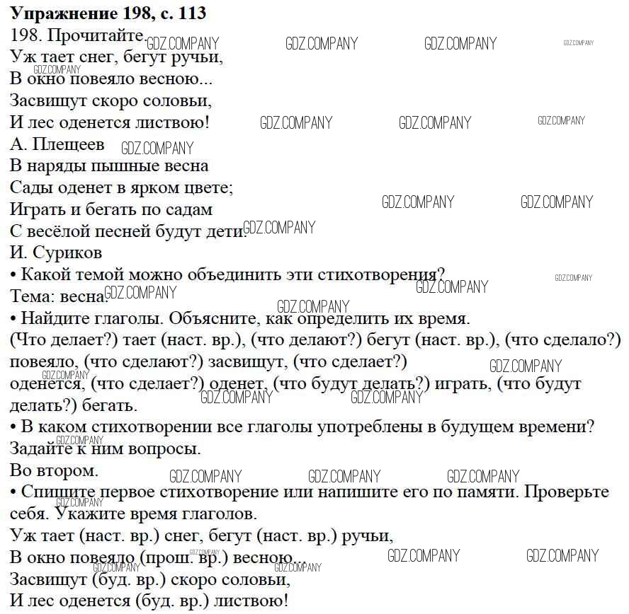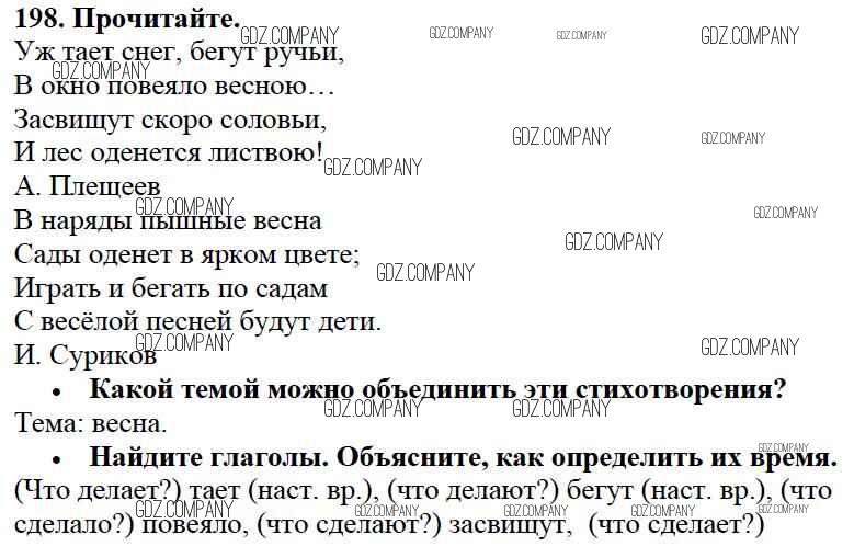 Здесь готовые ответы по Русскому языку за 3 (третий) класс от Канакина, Горецкий Учебник Школа России (издательство: Просвещение от 2013 г.) № 198