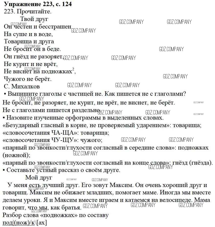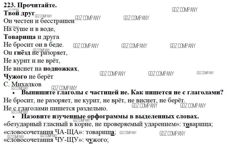 Здесь готовые ответы по Русскому языку за 3 (третий) класс от Канакина, Горецкий Учебник Школа России (издательство: Просвещение от 2013 г.) № 223