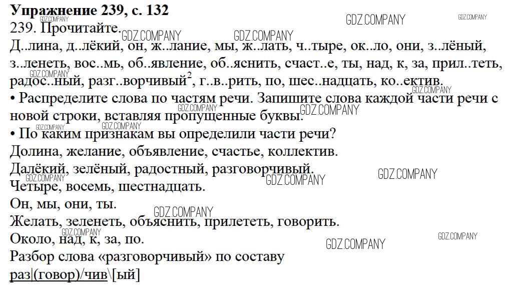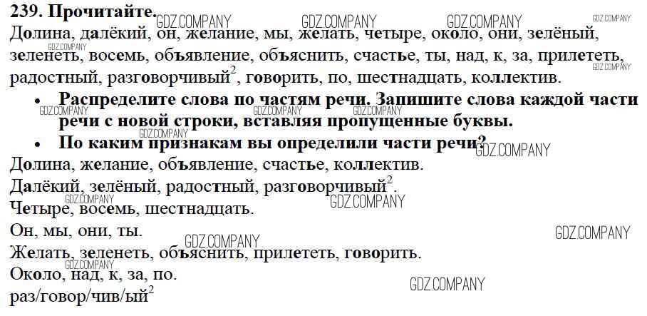 Здесь готовые ответы по Русскому языку за 3 (третий) класс от Канакина, Горецкий Учебник Школа России (издательство: Просвещение от 2013 г.) № 239