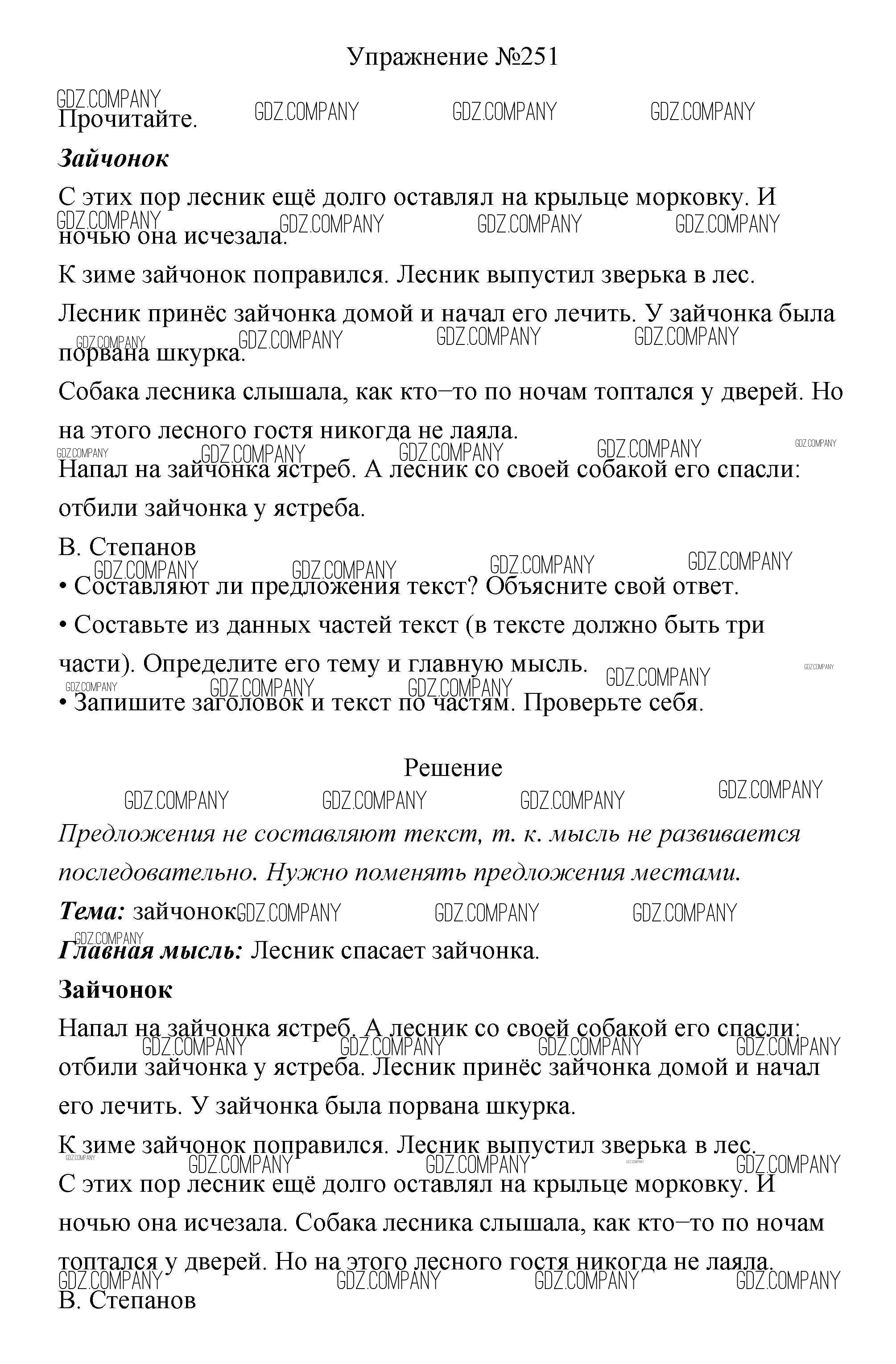 решение к части 2 / упражнение № / 251
