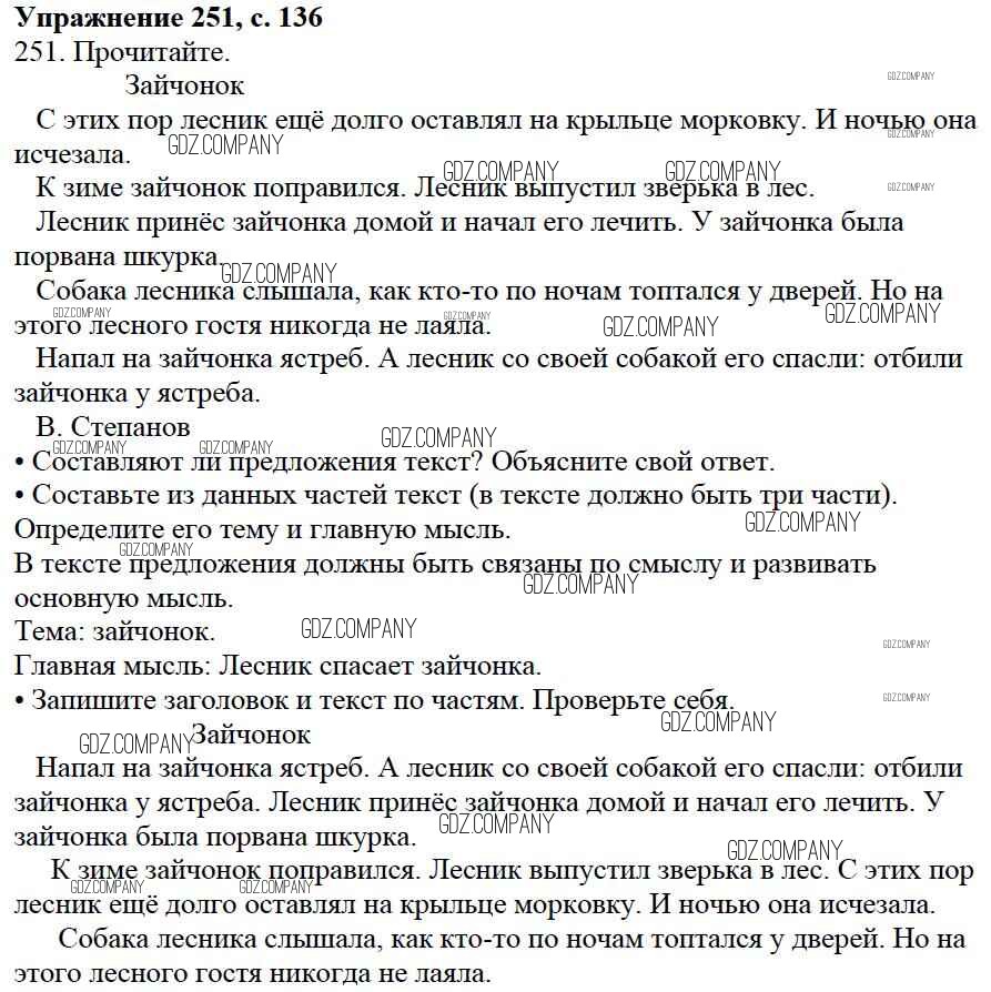 Здесь готовые ответы по Русскому языку за 3 (третий) класс от Канакина, Горецкий Учебник Школа России (издательство: Просвещение от 2013 г.) № 251