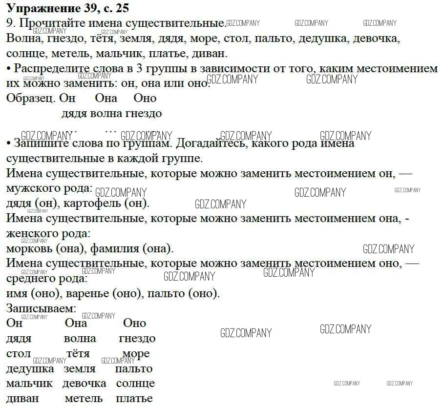 Здесь готовые ответы по Русскому языку за 3 (третий) класс от Канакина, Горецкий Учебник Школа России (издательство: Просвещение от 2013 г.) № 39