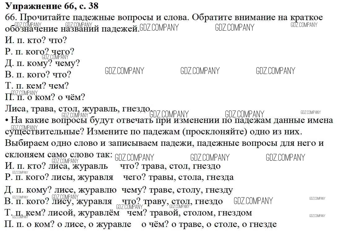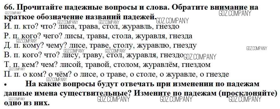 Здесь готовые ответы по Русскому языку за 3 (третий) класс от Канакина, Горецкий Учебник Школа России (издательство: Просвещение от 2013 г.) № 66