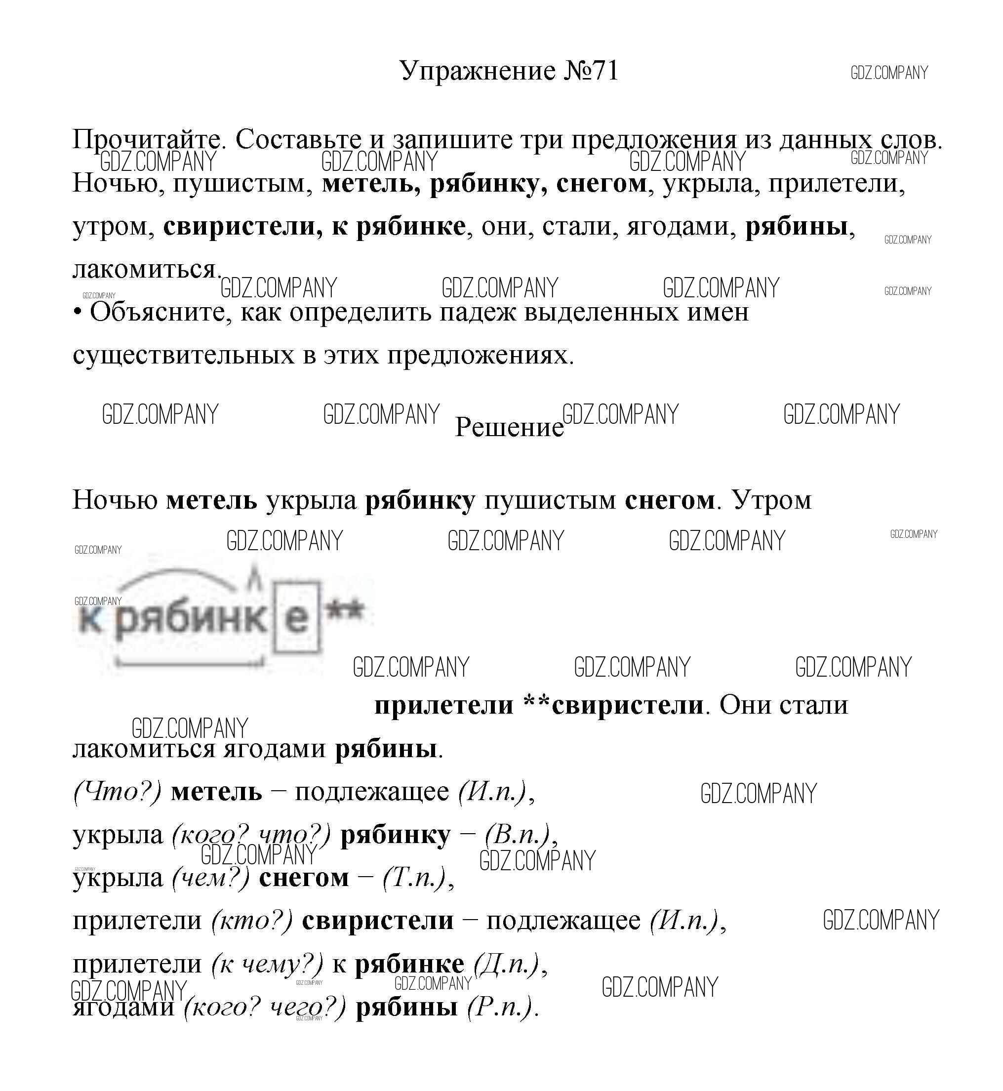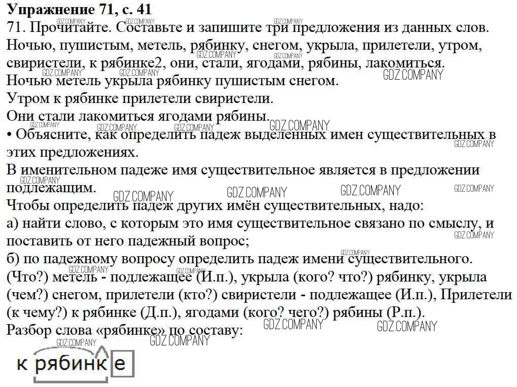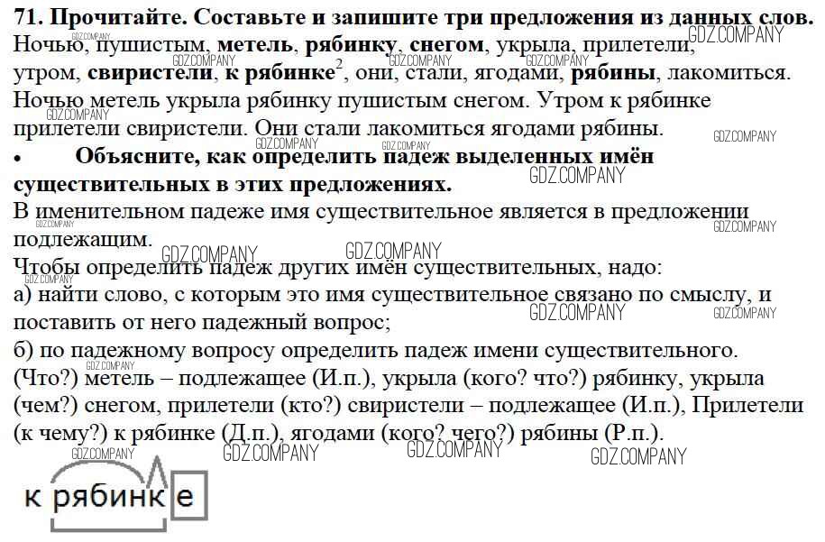 Здесь готовые ответы по Русскому языку за 3 (третий) класс от Канакина, Горецкий Учебник Школа России (издательство: Просвещение от 2013 г.) № 71