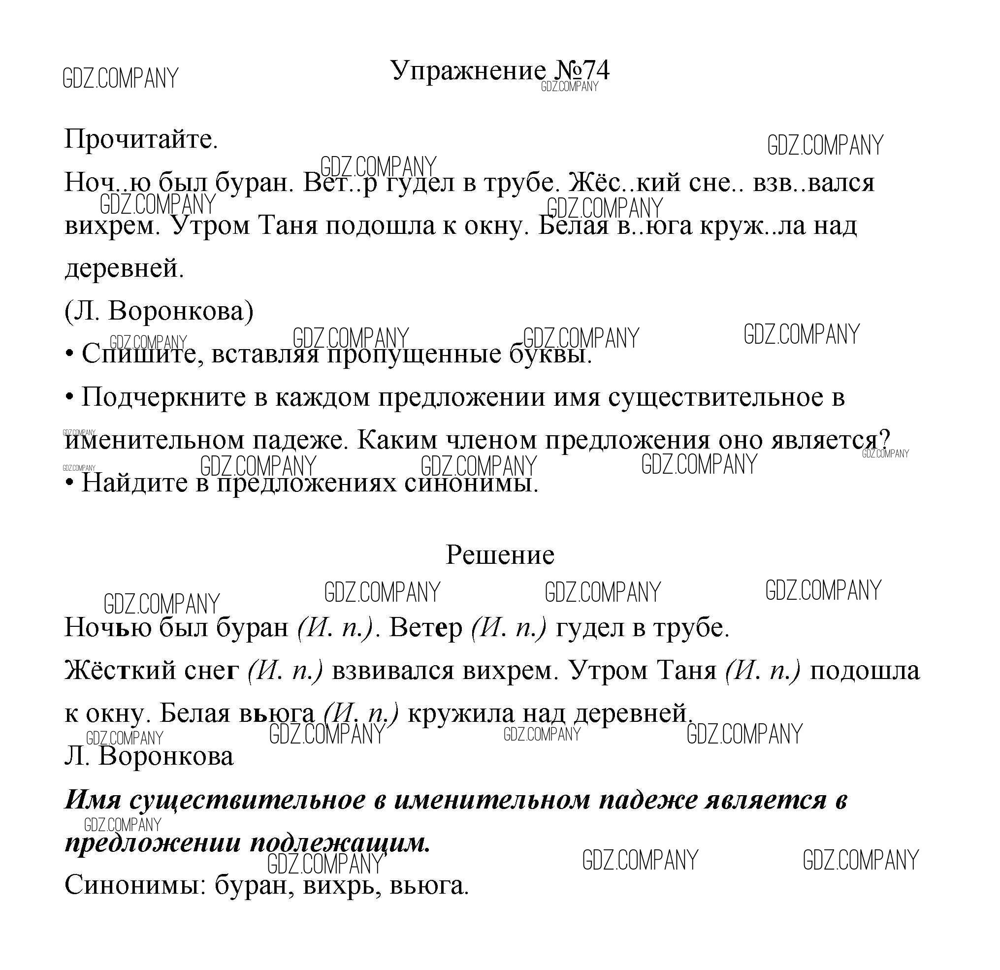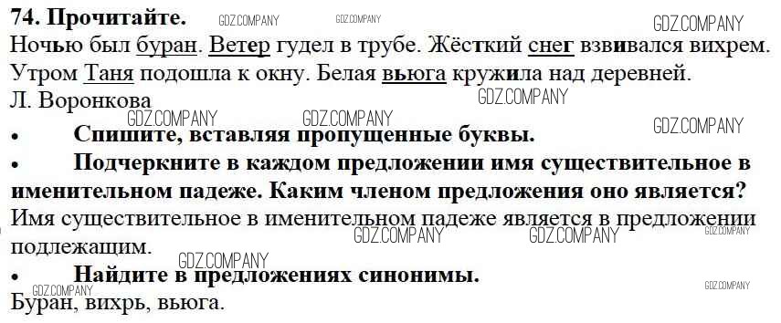Здесь готовые ответы по Русскому языку за 3 (третий) класс от Канакина, Горецкий Учебник Школа России (издательство: Просвещение от 2013 г.) № 74