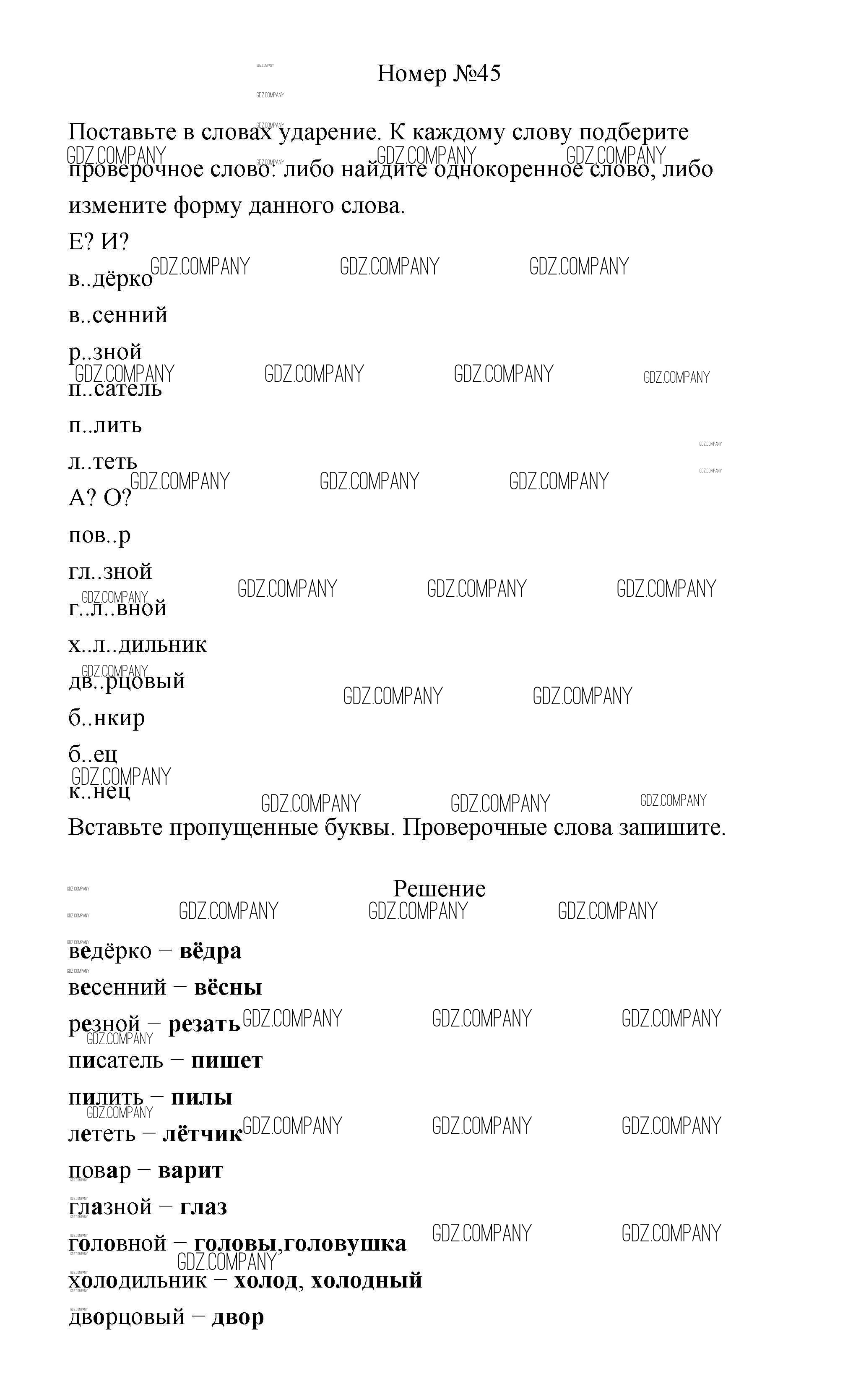 Здесь готовые ответы по Русскому языку за 3 (третий) класс от Климанова, Бабушкина Рабочая тетрадь Перспектива (издательство: Просвещение от 2018 г.) № 45
