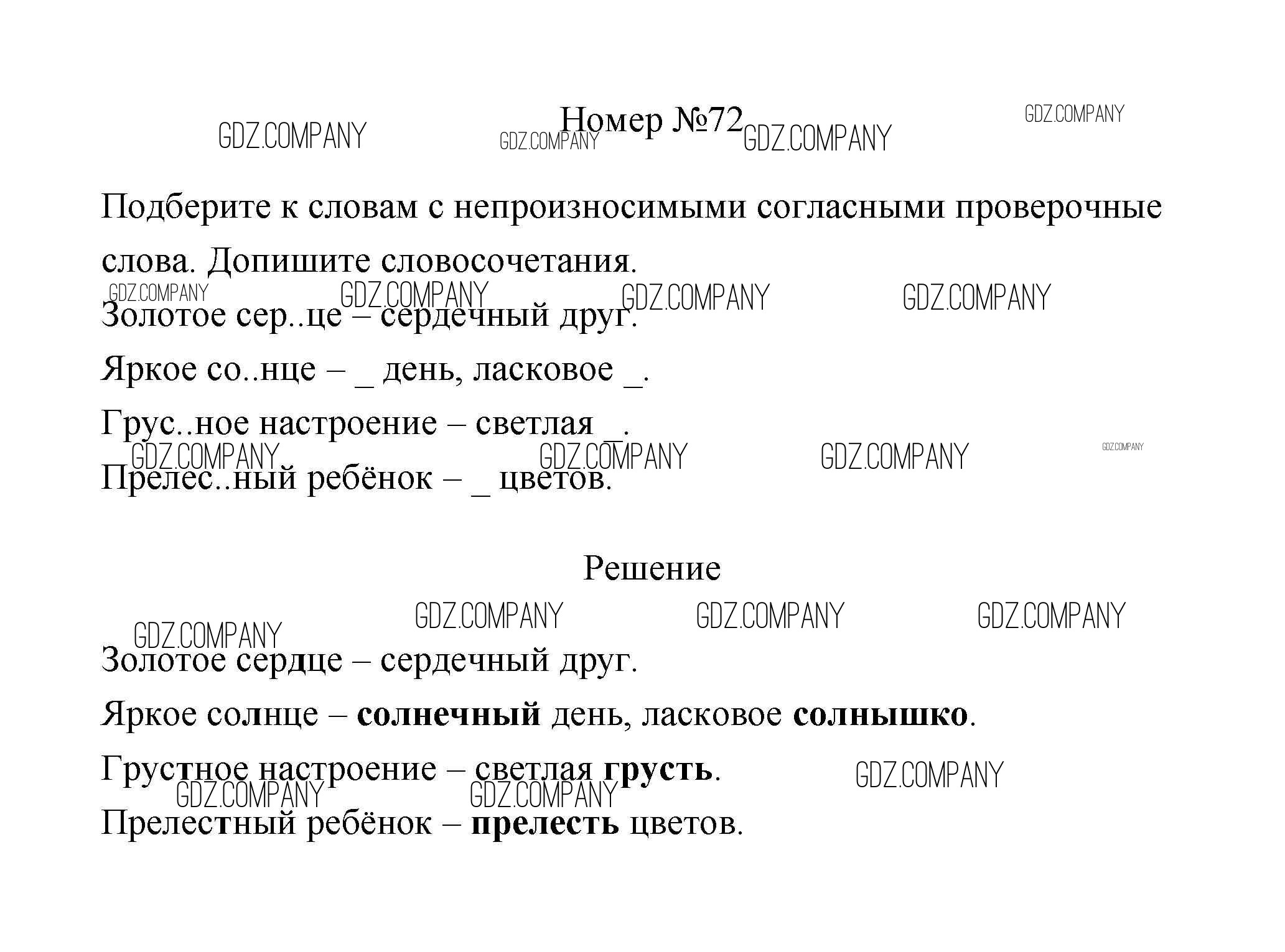 Здесь готовые ответы по Русскому языку за 3 (третий) класс от Климанова, Бабушкина Рабочая тетрадь Перспектива  (издательство: Просвещение от 2018 г.) № 72